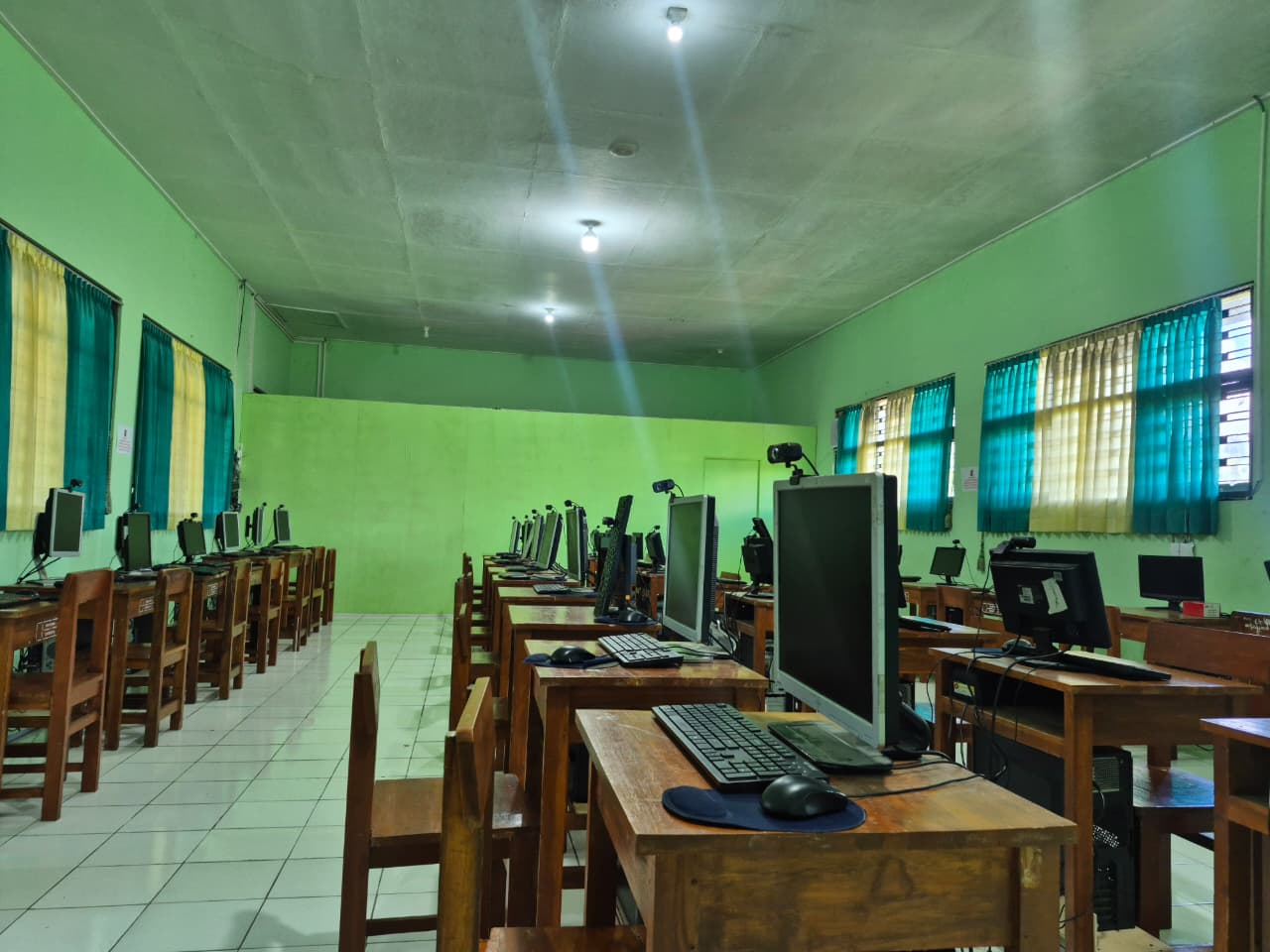 Ruang laboratorium komputer juga didesain dengan mempertimbangkan aspek keamanan, kenyamanan, dan kebersihan. Tata letak meja komputer diatur agar siswa dapat belajar dengan fokus dan ergonomis. Selain itu, pengawasan dilakukan secara ketat oleh guru atau teknisi laboratorium untuk memastikan semua perangkat digunakan secara bertanggung jawab dan sesuai dengan tujuan pembelajaran.